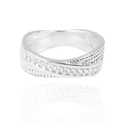 Fonte: RS Notícias: ANEL FOLHEADO A PRATA COM ADORNOS EM FORMA DE X E MICRO-ZIRCÔNIAS CRAVEJADAS