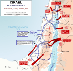 A guerra árabe-israelense de 1948, também conhecida como a “guerra de independência” (hebraico: מלחמת העצמאות) ou como “a catástrofe” (“al Nakba,” árabe: النكبة), começou após a retirada britânica e com a declaração do Estado de Israel a 14 de Maio de 1948.